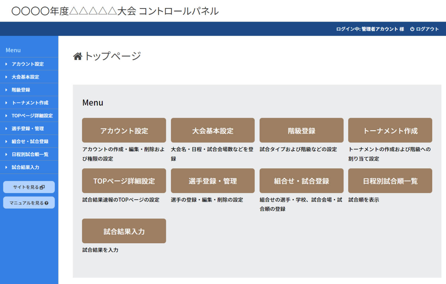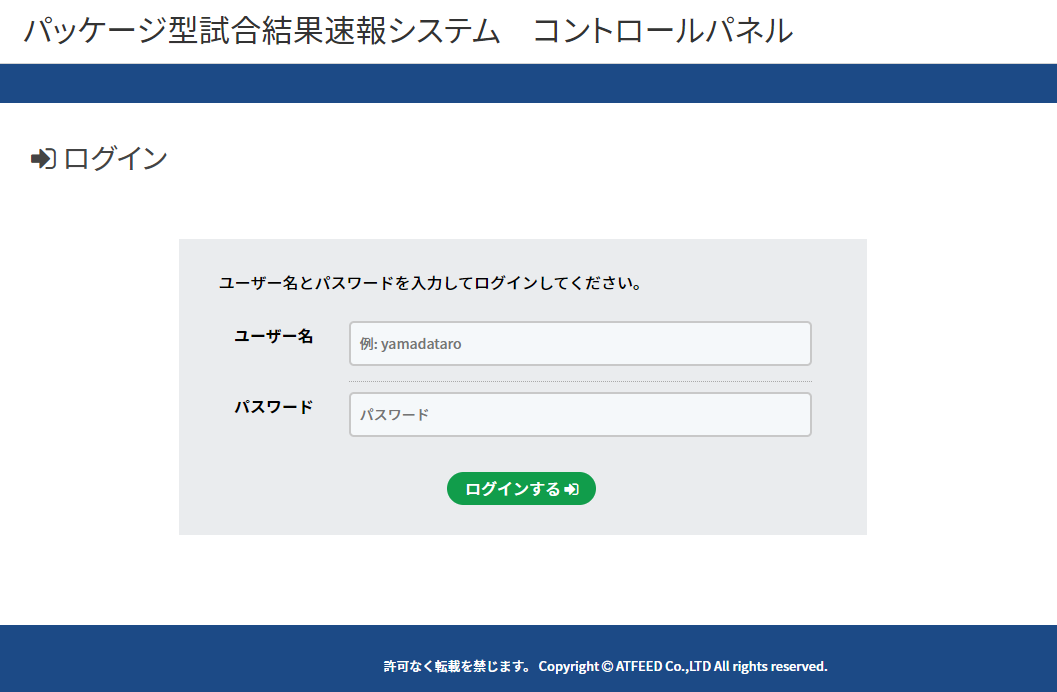 パッケージ型試合結果システムをご利用いただき、ありがとうございます。