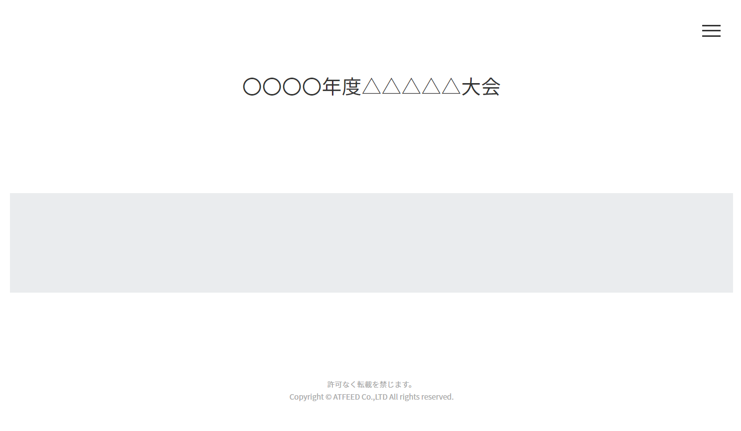 | 大会タイトル (必須) | 大会名をご入力ください。ここで設定した大会タイトルがホームページのタイトル名になります。 例) 第5回 関西柔道選手権大会 / 令和4年度 小学校柔道大会 等 |