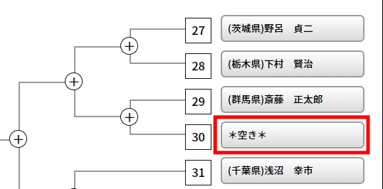 大会当日や直前に、何らかの理由で急遽選手が出場できなくなった場合は、「空き」を選択してください。