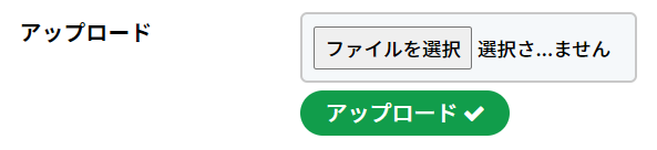 下図のようにアップロードの「ファイルを選択」より保存したファイルを選択し、アップロードボタンを選択してください。