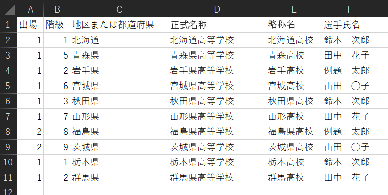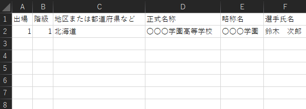 1行目はそのままで、2行目以降より選手情報をご入力ください。