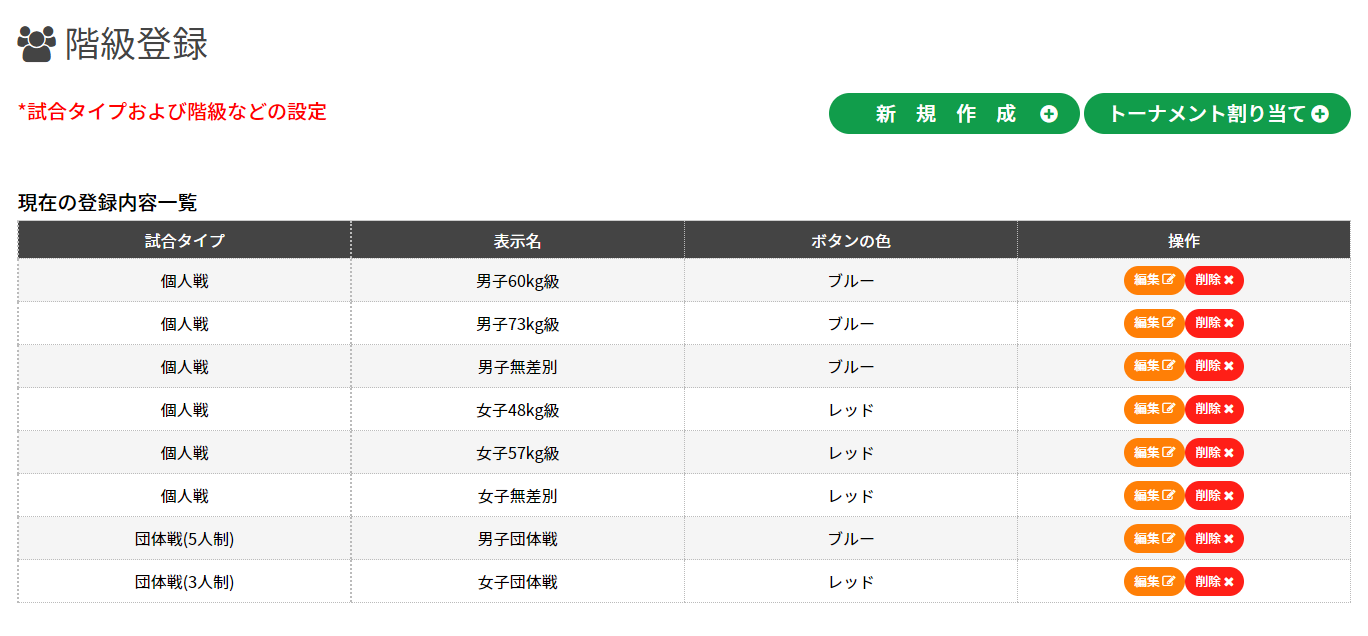 修正が必要な階級は「編集」ボタンより変更が可能です。